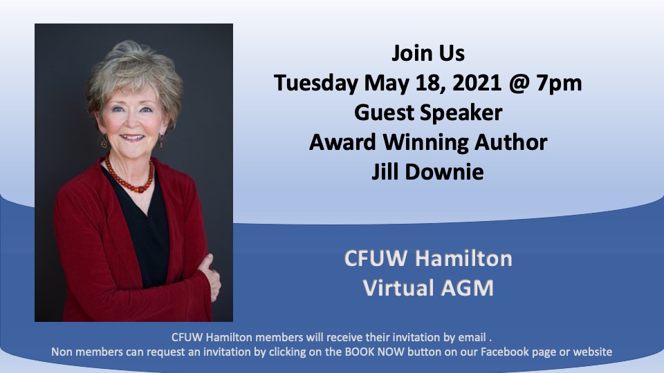 Our guest speaker this month is award-winning author Jill Downie. You can read more about Jill on her website http://www.jilldownie.com/index.html