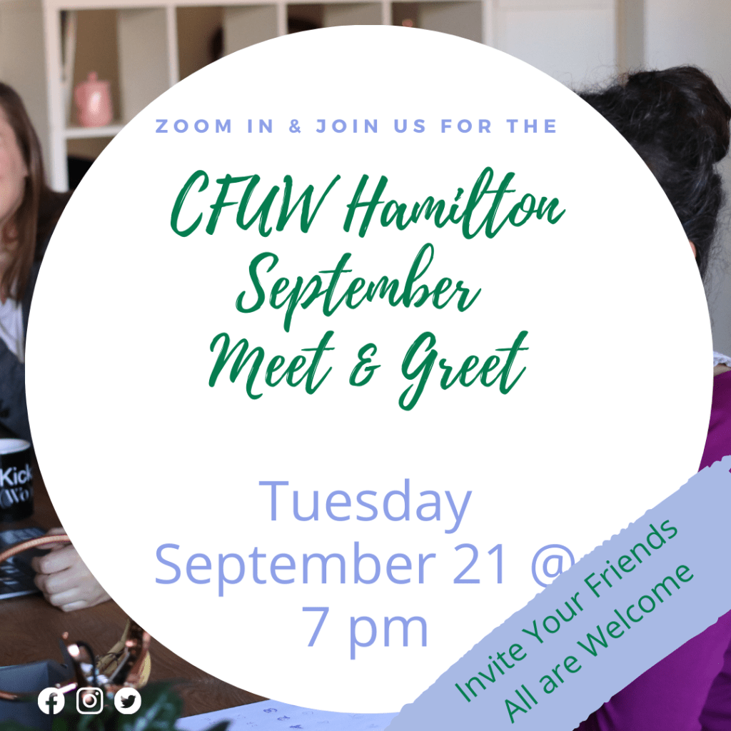 CFUW Hamilton extends a warm invitation to our September Meet & Greet. The Zoom link will be emailed to returning members. Anyone else can request a link https://cutt.ly/NWYPZnU