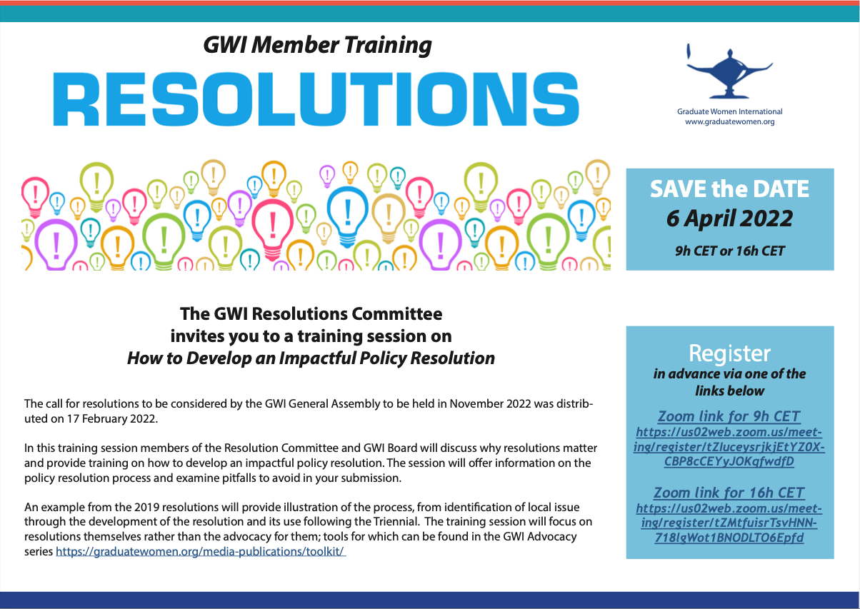 For interested members, GWI is hosting a training session on How to Develop an Impactful Policy Resolutions.