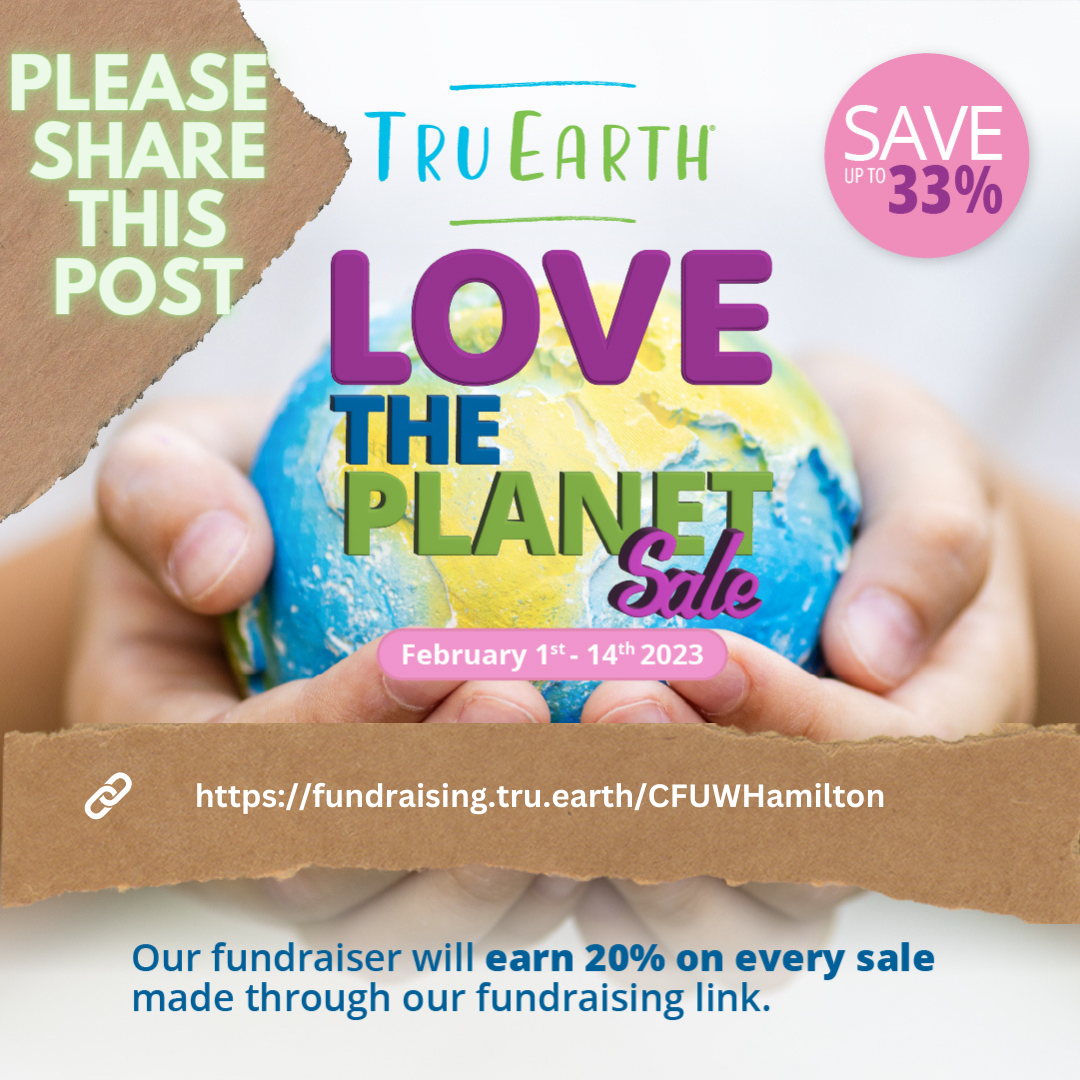 Tru Earth-Love The Planet Sale Posted byInfoFebruary 10, 2023February 9, 2023Posted inUncategorized Do your LAUNDRY, save the PLANET ,help us with our Education Scholarships and save up to 33% with Tru Earth’s LOVE THE PLANET SALE. Our fundraising link is https://fundraising.tru.earth/CFUWHamilton Share this: Click to share on Facebook (Opens in new window) Facebook Click to share on X (Opens in new window) X Click to share on Pinterest (Opens in new window) Pinterest Click to email a link to a friend (Opens in new window) Email Click to share on LinkedIn (Opens in new window) LinkedIn Click to print (Opens in new window) Print Like Loading... Related