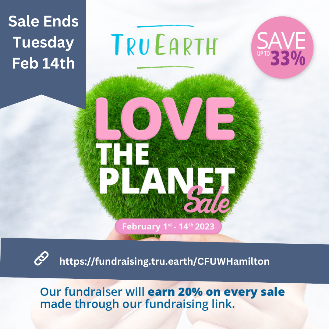 Scholarship Fundraising with Tru Earth Posted byInfoFebruary 13, 2023February 12, 2023Posted inUncategorized The Tru Earth Fundraising “Love the Planet (33 % off )Sale” ends Tuesday. Please use the fundraising link πhttps://fundraising.tru.earth/CFUWHamilton Share this: Share on Facebook (Opens in new window) Facebook Share on X (Opens in new window) X Share on Pinterest (Opens in new window) Pinterest Email a link to a friend (Opens in new window) Email Share on LinkedIn (Opens in new window) LinkedIn Print (Opens in new window) Print Like Loading... Related