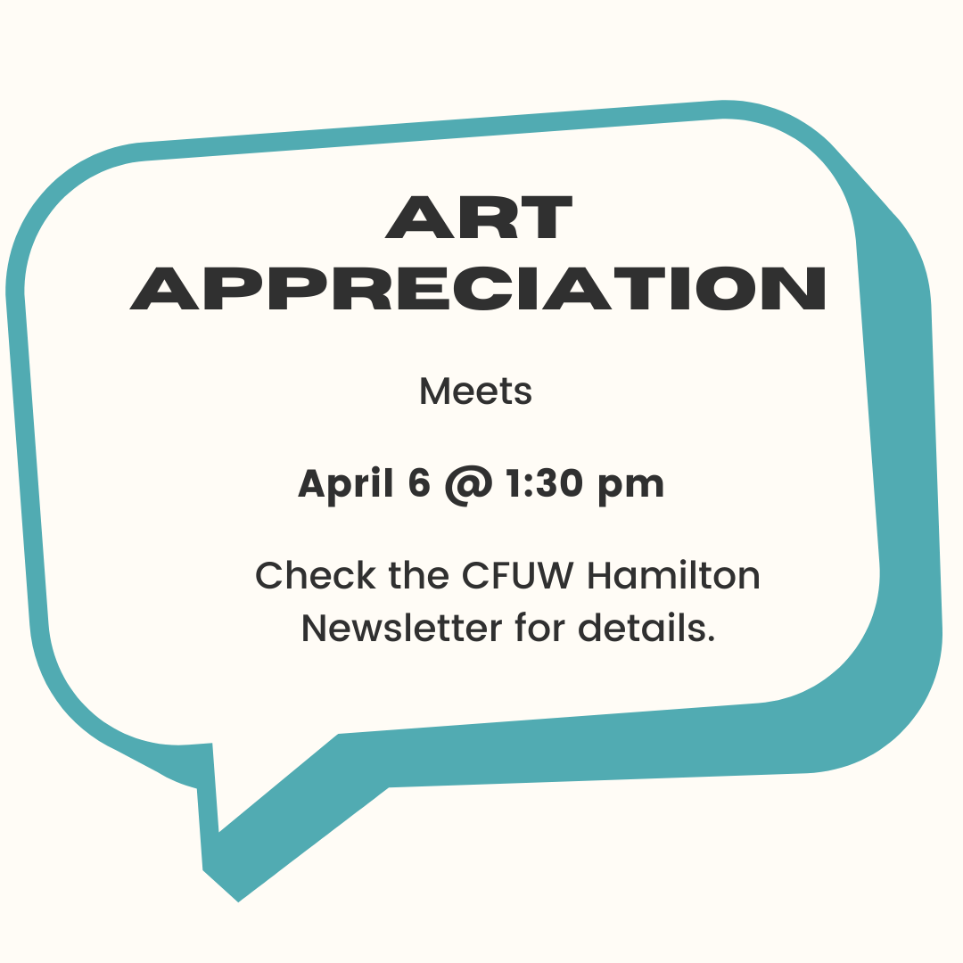 CFUW Hamilton – Art Appreciation Posted byInfoApril 5, 2023April 4, 2023Posted inUncategorized Advocacy – Education – Fellowship #SupportEducation #EmpowerWomen #InspireChange Share this: Click to share on Facebook (Opens in new window) Facebook Click to share on X (Opens in new window) X Click to share on Pinterest (Opens in new window) Pinterest Click to email a link to a friend (Opens in new window) Email Click to share on LinkedIn (Opens in new window) LinkedIn Click to print (Opens in new window) Print Like Loading... Related