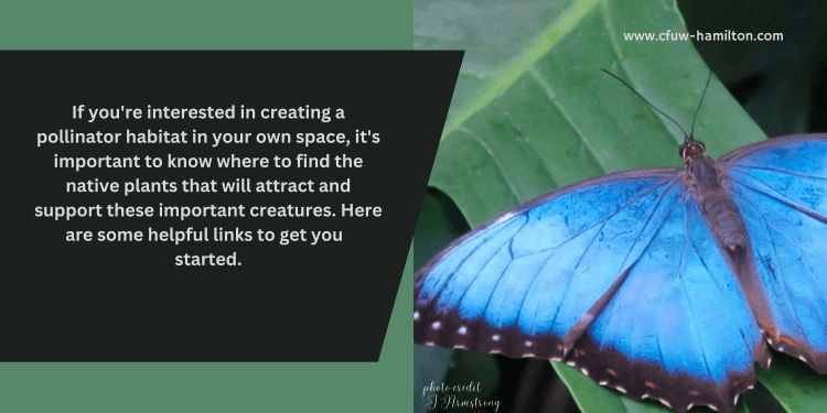 If you’re interested in creating a pollinator habitat in your own space, it’s important to know where to find the native plants that will attract and support these important creatures. Here are some helpful links to get started: