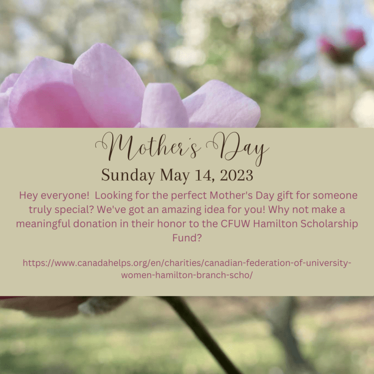 “Hey everyone! π Looking for the perfect Mother’s Day gift for someone truly special? We’ve got an amazing idea for you! ππ Why not make a meaningful donation in their honor to the CFUW Hamilton Scholarship Fund? It’s super easy and makes a real difference! πβ¨