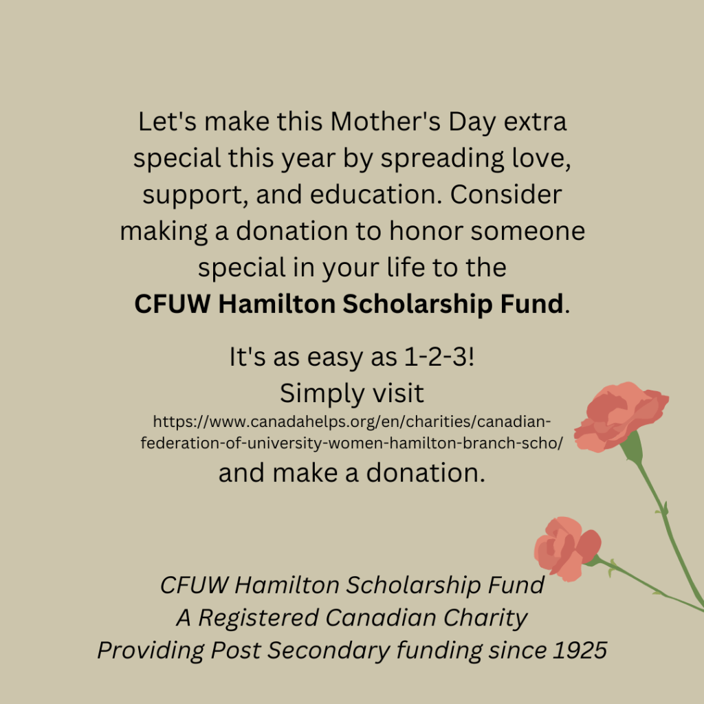 Hey everyone! 💖 Looking for the perfect Mother’s Day gift for someone truly special? Go to https://www.canadahelps.org/en/charities/canadian-federation-of-university-women-hamilton-branch-scho/