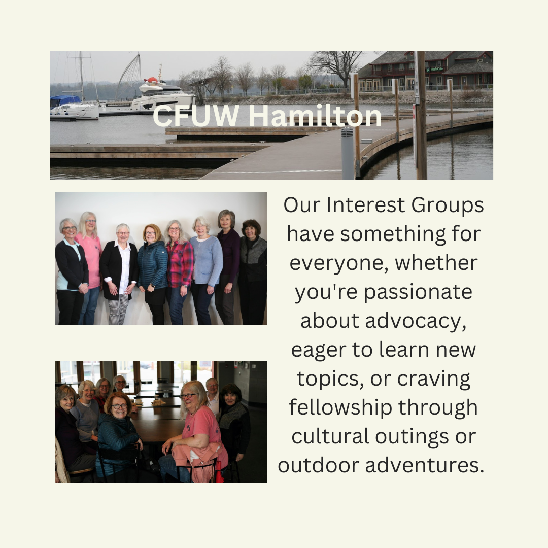 CFUWHamilton #InterestGroups #CommunityEngagement #Advocacy #Education #Fellowship #MakeADifference #LifelongFriendships