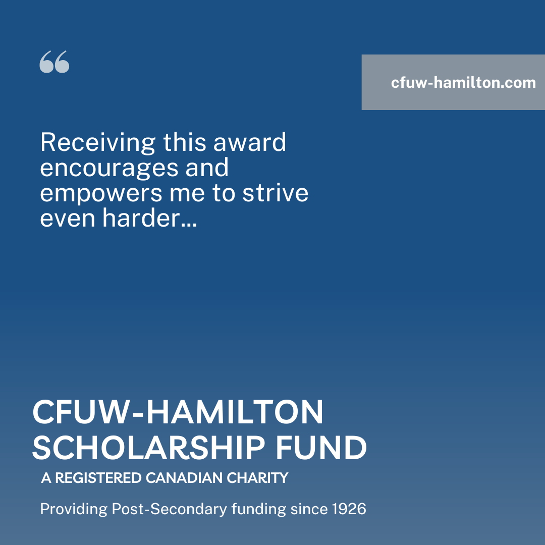 Join us in supporting the CFUW Hamilton Scholarship Fund making a difference in the lives of women pursuing higher education. Together, we can empower these individuals to reach their goals, overcome barriers, and create a more equitable and inclusive society. ππͺ