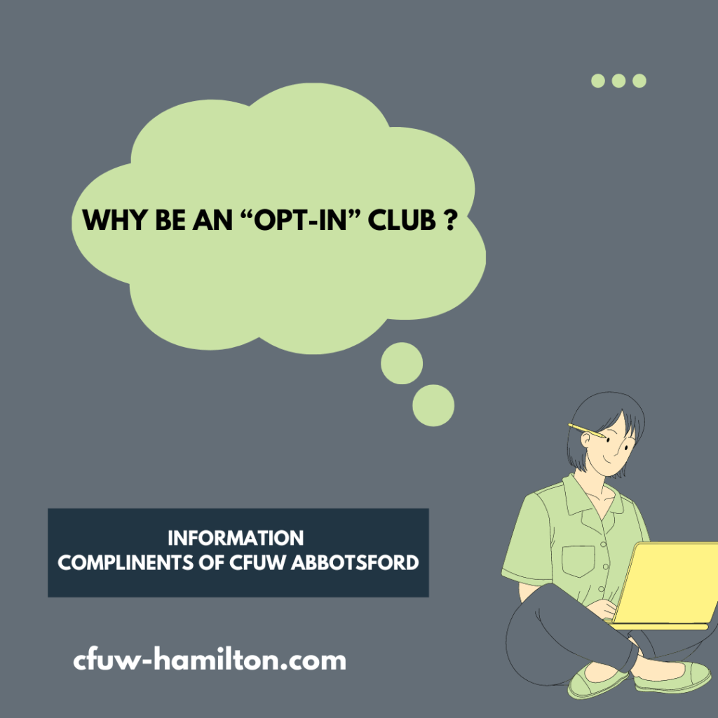 Why Be An Opt-In Club? Posted byInfoSeptember 7, 2023September 7, 2023Posted inUncategorized #CFUWHamilton #InterestGroups #CommunityEngagement #Advocacy #Education #Fellowship #MakeADifference #LifelongFriendships Share this: Share on Facebook (Opens in new window) Facebook Share on X (Opens in new window) X Share on Pinterest (Opens in new window) Pinterest Email a link to a friend (Opens in new window) Email Share on LinkedIn (Opens in new window) LinkedIn Print (Opens in new window) Print Like Loading... Related