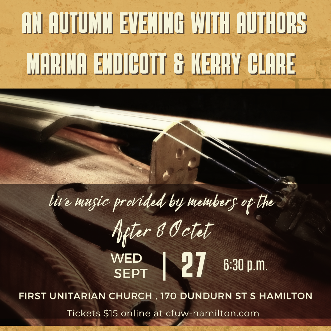 Live Music with Members of the After 8 Octet Posted byInfoSeptember 18, 2023September 15, 2023Posted inUncategorized π Join us on Sept 27, 6:30 PM at First Unitarian Church for an enchanting Autumn Evening with authors Marina Endicott & Kerry Clare, plus live music by AFTER 8 Octet members! ππΆ 170 Dundurn St S. Don’t miss it! #AutumnAuthors #LiveMusic Purchase your ticket HERE Share this: Click to share on Facebook (Opens in new window) Facebook Click to share on X (Opens in new window) X Click to share on Pinterest (Opens in new window) Pinterest Click to email a link to a friend (Opens in new window) Email Click to share on LinkedIn (Opens in new window) LinkedIn Click to print (Opens in new window) Print Like Loading... Related