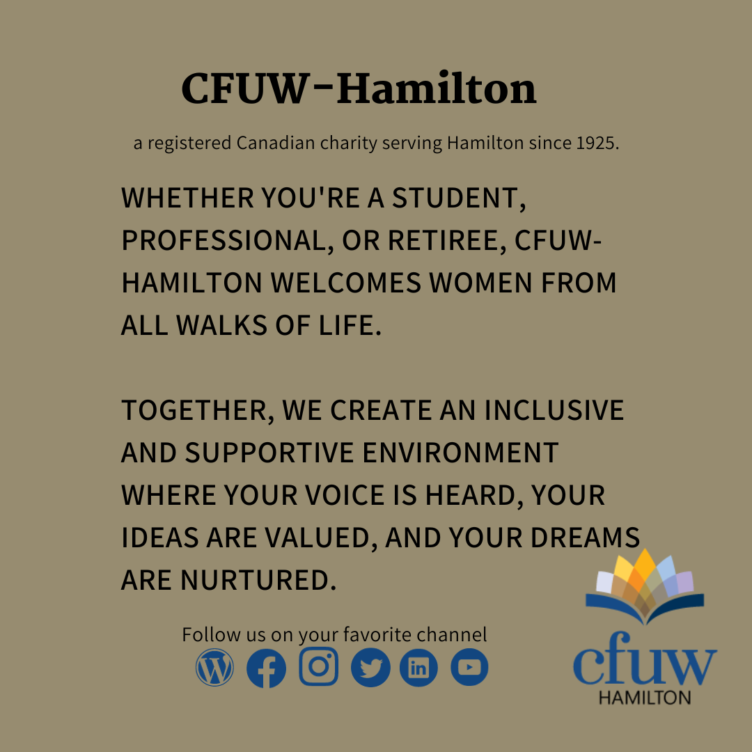 #MeaningfulConnections Posted byInfoOctober 9, 2023October 6, 2023Posted inUncategorized If you’re passionate about education, advocacy, and connecting with like-minded individuals, we’d love to have you on board. Together, we can make a difference! 📚💪 #CFUWHamilton #CommunityMatters #MeaningfulConnections Share this: Click to share on Facebook (Opens in new window) Facebook Click to share on X (Opens in new window) X Click to share on Pinterest (Opens in new window) Pinterest Click to email a link to a friend (Opens in new window) Email Click to share on LinkedIn (Opens in new window) LinkedIn Click to print (Opens in new window) Print Like Loading... Related