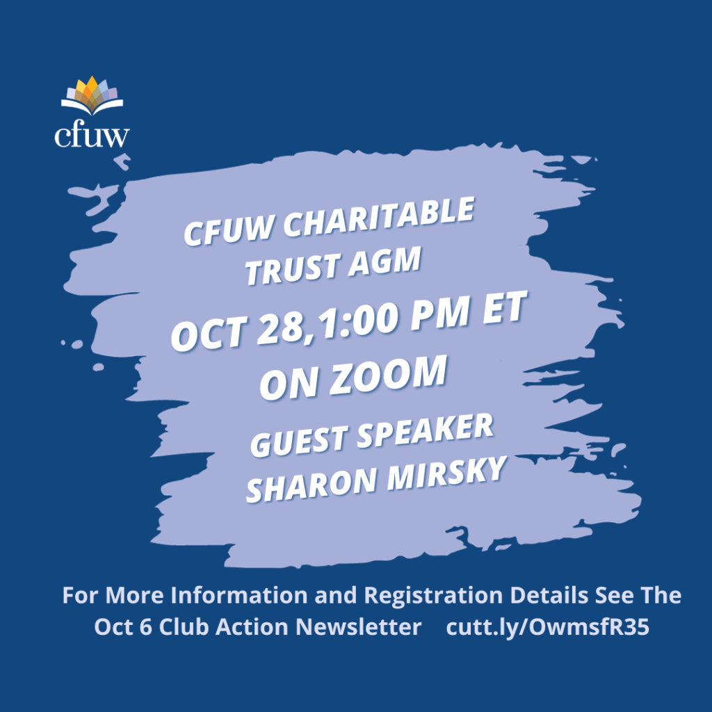 Registration is now open for the CFUW Charitable Trust AGM. For more information and Registration details see the Oct 6 Club Action Newsletter https://cutt.ly/OwmsfR35
