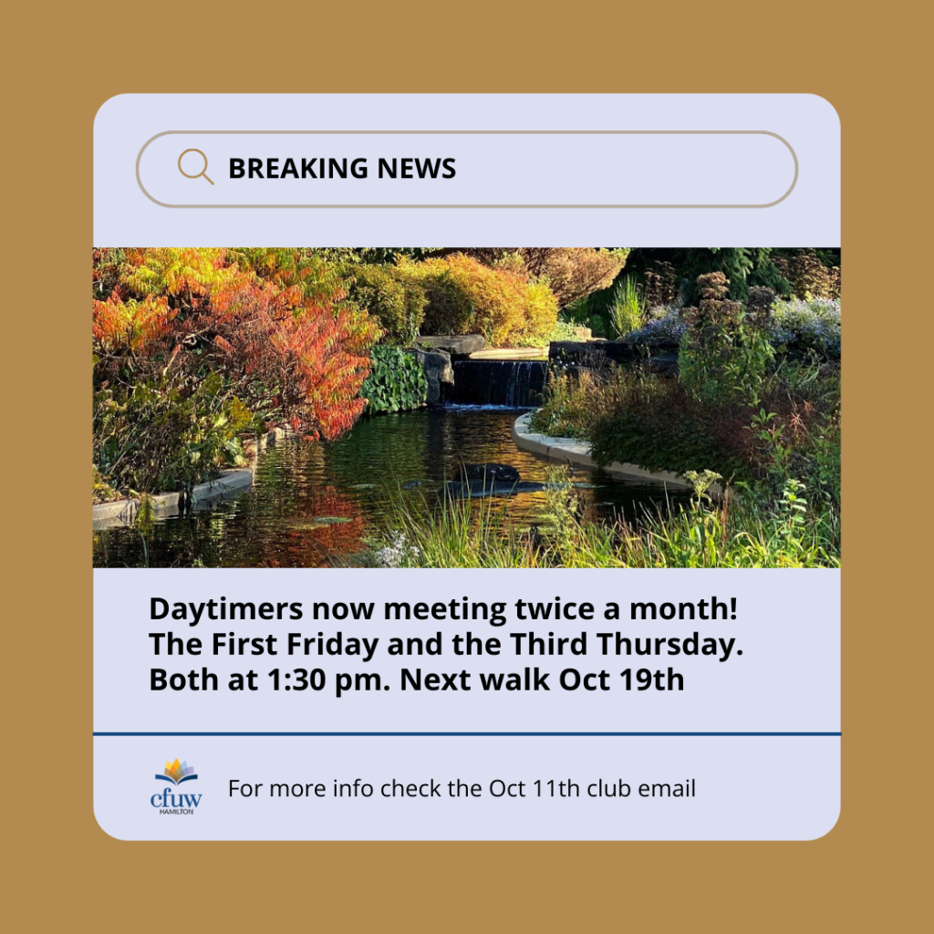 Daytimers Walking Group Now Meeting Twice a Month Posted byInfoOctober 16, 2023October 13, 2023Posted inUncategorized Exciting news! Daytimers walking group now meeting twice a month: 1st Friday & 3rd Thursday at 1:30 pm. Next walk Oct 19th! ๐ถโโ๏ธ๐ Share this: Share on Facebook (Opens in new window) Facebook Share on X (Opens in new window) X Share on Pinterest (Opens in new window) Pinterest Email a link to a friend (Opens in new window) Email Share on LinkedIn (Opens in new window) LinkedIn Print (Opens in new window) Print Like Loading... Related