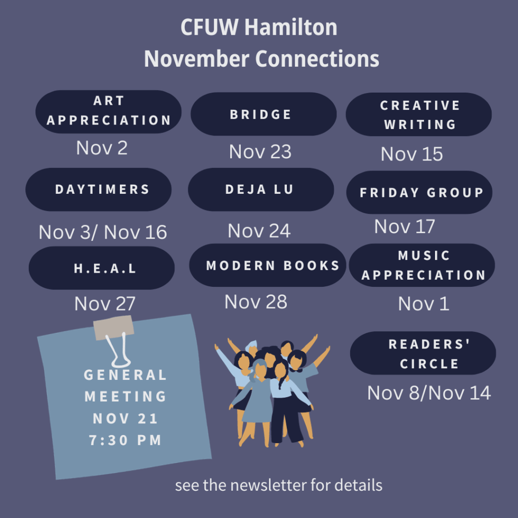 Your November CFUW Connections Posted byInfoOctober 29, 2023October 27, 2023Posted inUncategorized Join CFUW Hamilton for a world of opportunities, connections, and fun! Explore our Interest Groups at cfuw-hamilton.com 🌟 #CommunityEngagement #Education #MakeADifference Share this: Click to share on Facebook (Opens in new window) Facebook Click to share on X (Opens in new window) X Click to share on Pinterest (Opens in new window) Pinterest Click to email a link to a friend (Opens in new window) Email Click to share on LinkedIn (Opens in new window) LinkedIn Click to print (Opens in new window) Print Like Loading... Related