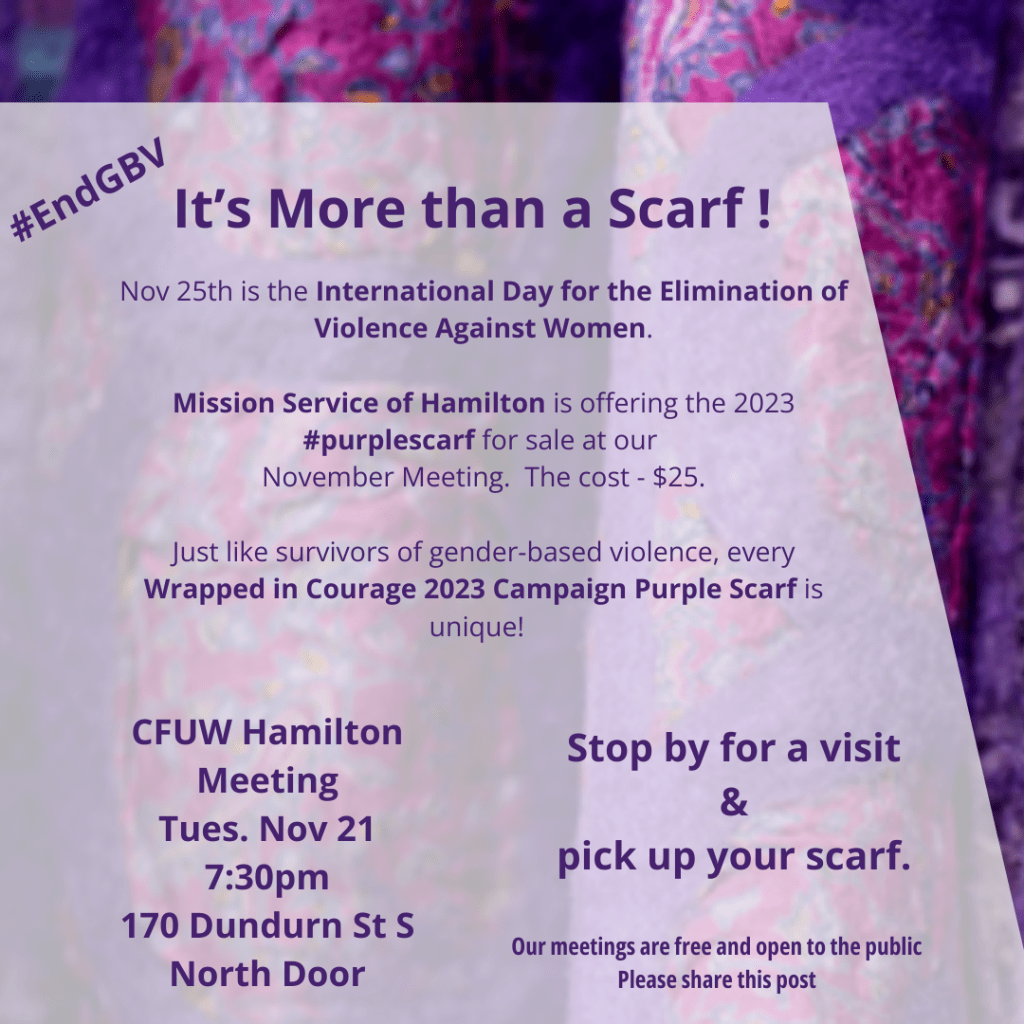 It’s More Than a Scarf! Posted byInfoNovember 16, 2023November 15, 2023Posted inUncategorized Grab your 2023 #PurpleScarf at our November meeting. More than just a scarf, it’s a statement! 🧣✨ #EndGBV Share this: Click to share on Facebook (Opens in new window) Facebook Click to share on X (Opens in new window) X Click to share on Pinterest (Opens in new window) Pinterest Click to email a link to a friend (Opens in new window) Email Click to share on LinkedIn (Opens in new window) LinkedIn Click to print (Opens in new window) Print Like Loading... Related