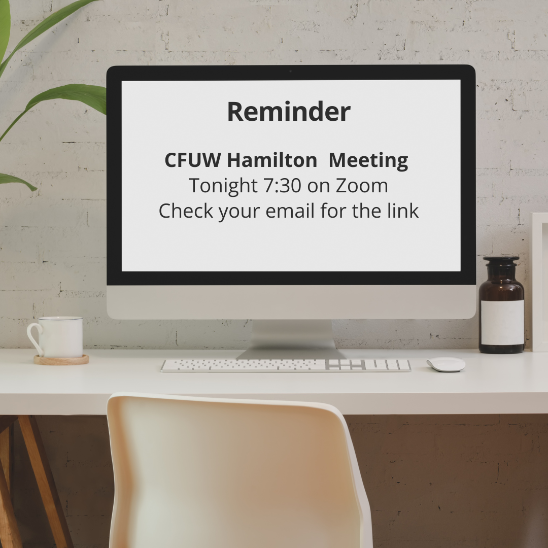 If you’re a CFUW Member or have registered for tonight’s event, you should have received a link in your email. Kindly check both your inbox and junk mail folders for the link. If you encounter any difficulties, please feel free to reach out to us for assistance.