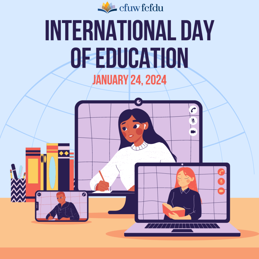 Jan 24th International Day of Education Posted byInfoJanuary 24, 2024January 21, 2024Posted inUncategorized Education is a right, a public good, and our shared responsibility. 📚✨ Celebrating International Day of Education! #EducationForAll #GlobalGoals Share this: Click to share on Facebook (Opens in new window) Facebook Click to share on X (Opens in new window) X Click to share on Pinterest (Opens in new window) Pinterest Click to email a link to a friend (Opens in new window) Email Click to share on LinkedIn (Opens in new window) LinkedIn Click to print (Opens in new window) Print Like Loading... Related