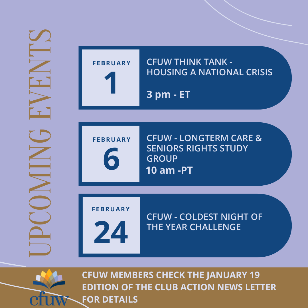 Save the date! Exciting CFUW National online events are just around the corner. Open to all CFUW members for free. Mark your calendars! 🗓️