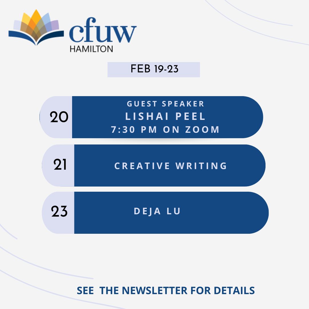 Get ready for an exciting week with CFUW Hamilton! Join the fun by checking out #CFUWHamilton to stay up-to-date with all the latest community events and interest groups. Don’t miss out!
