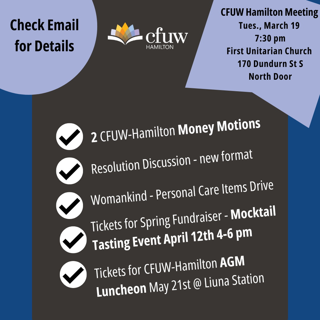 π§ Check your inbox for CFUW-Hamilton updates! π Your Tuesday meeting essentials are all set and ready for you. Dive in and stay in the loop! #CFUWHamilton #StayConnected #StayInformed π©π