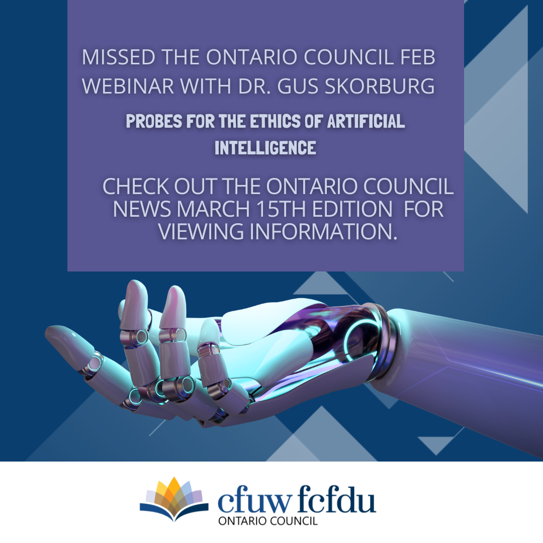 Viewing Info for CFUW Ontario Council Webinar ” PROBES for the Ethics of Artiafical Intelligence’ with Dr. Gus Skorburg Posted byInfoMarch 18, 2024March 15, 2024Posted inUncategorized CFUW Ontario Council Webinar ” PROBES for the Ethics of Artificial Intelligence’ with Dr. Gus Skorburg. Details in the March 15th Ontario Council News https://cutt.ly/ow08ZoNd Share this: Click to share on Facebook (Opens in new window) Facebook Click to share on X (Opens in new window) X Click to share on Pinterest (Opens in new window) Pinterest Click to email a link to a friend (Opens in new window) Email Click to share on LinkedIn (Opens in new window) LinkedIn Click to print (Opens in new window) Print Like Loading... Related