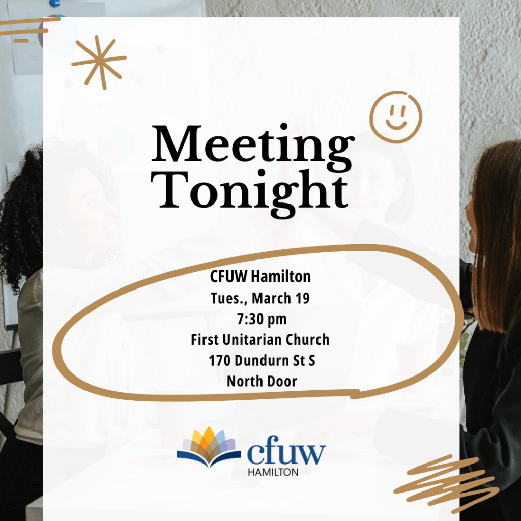 Meeting Tonight! Posted byInfoMarch 19, 2024March 15, 2024Posted inUncategorized Exciting CFUW Hamilton Meeting! Important Money Motions, Resolutions 2024, Personal Care Item Drive, Fundraiser & AGM Tickets! See you there! ✨ #CFUWHamilton #communitysupport Share this: Click to share on Facebook (Opens in new window) Facebook Click to share on X (Opens in new window) X Click to share on Pinterest (Opens in new window) Pinterest Click to email a link to a friend (Opens in new window) Email Click to share on LinkedIn (Opens in new window) LinkedIn Click to print (Opens in new window) Print Like Loading... Related