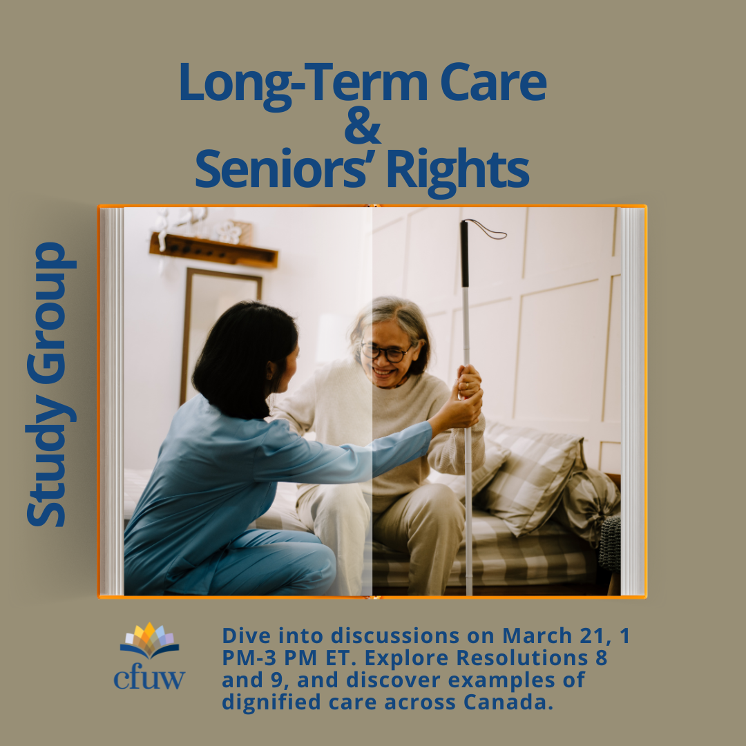 🌟 CFUW National Study Group on Long-Term Care & Seniors’ Rights 📚 . Explore Resolutions 8 and 9, and discover examples of dignified care across Canada.https://cutt.ly/Mw2t49An  #LongTermCare #SeniorsRights #AgingWithDignity