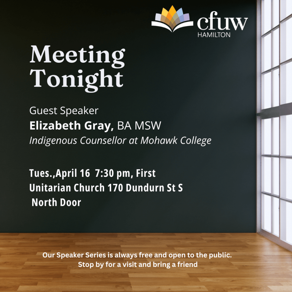 Meeting Tonight Posted byInfoApril 16, 2024April 15, 2024Posted inUncategorized Reminder: CFUW Hamilton Meeting tonight with Elizabeth Gray presenting on Supporting Indigenous Learners. Tickets for the AGM Luncheon also available for purchase. See you there! Share this: Share on Facebook (Opens in new window) Facebook Share on X (Opens in new window) X Share on Pinterest (Opens in new window) Pinterest Email a link to a friend (Opens in new window) Email Share on LinkedIn (Opens in new window) LinkedIn Print (Opens in new window) Print Like Loading... Related