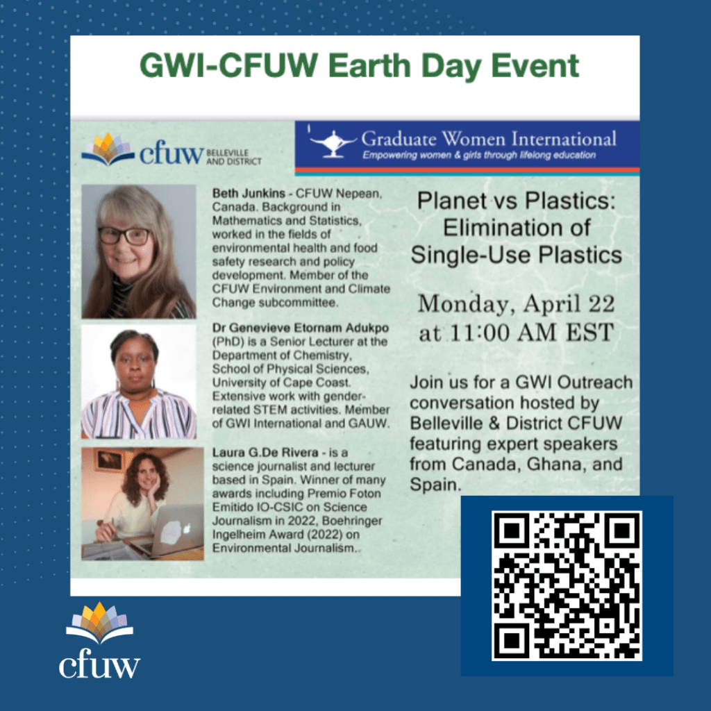 Check out the Special Earth Day Edition of the Club Action Newsletter for registration details for the GWI-CFUW Earth Day Event – Planet vs Plastics Elimination of Single-Use Plastics. https://cutt.ly/aw5T7LRF