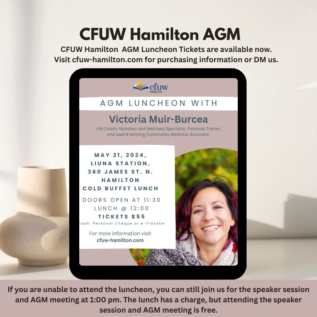 CFUW AGM Luncheon Tickets are available now. Click HERE for purchasing information. You can also CONTACT us and we will get back to you.