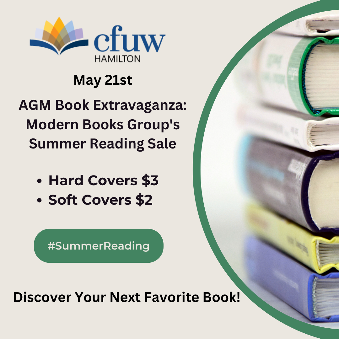 Join us tomorrow for our AGM and book sale! While meal tickets are now closed, everyone is welcome to attend at no charge our Speaker Series with Victoria Muir-Burcea, the AGM, and our book sale.