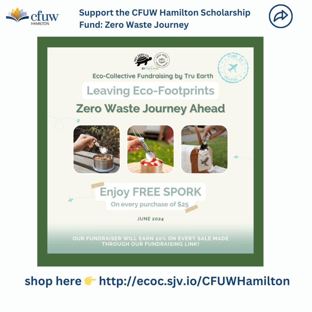 🌱 Exciting news! TruEarth has teamed up with Eco-Collective to bring their eco-friendly products to our fundraising lineup. Now, 20% of purchases through ecoc.sjv.io/CFUWHamilton will support our scholarship fund, promoting a low-waste lifestyle and helping students achieve their educational goals. Join us in making a difference today! 🎓💚
