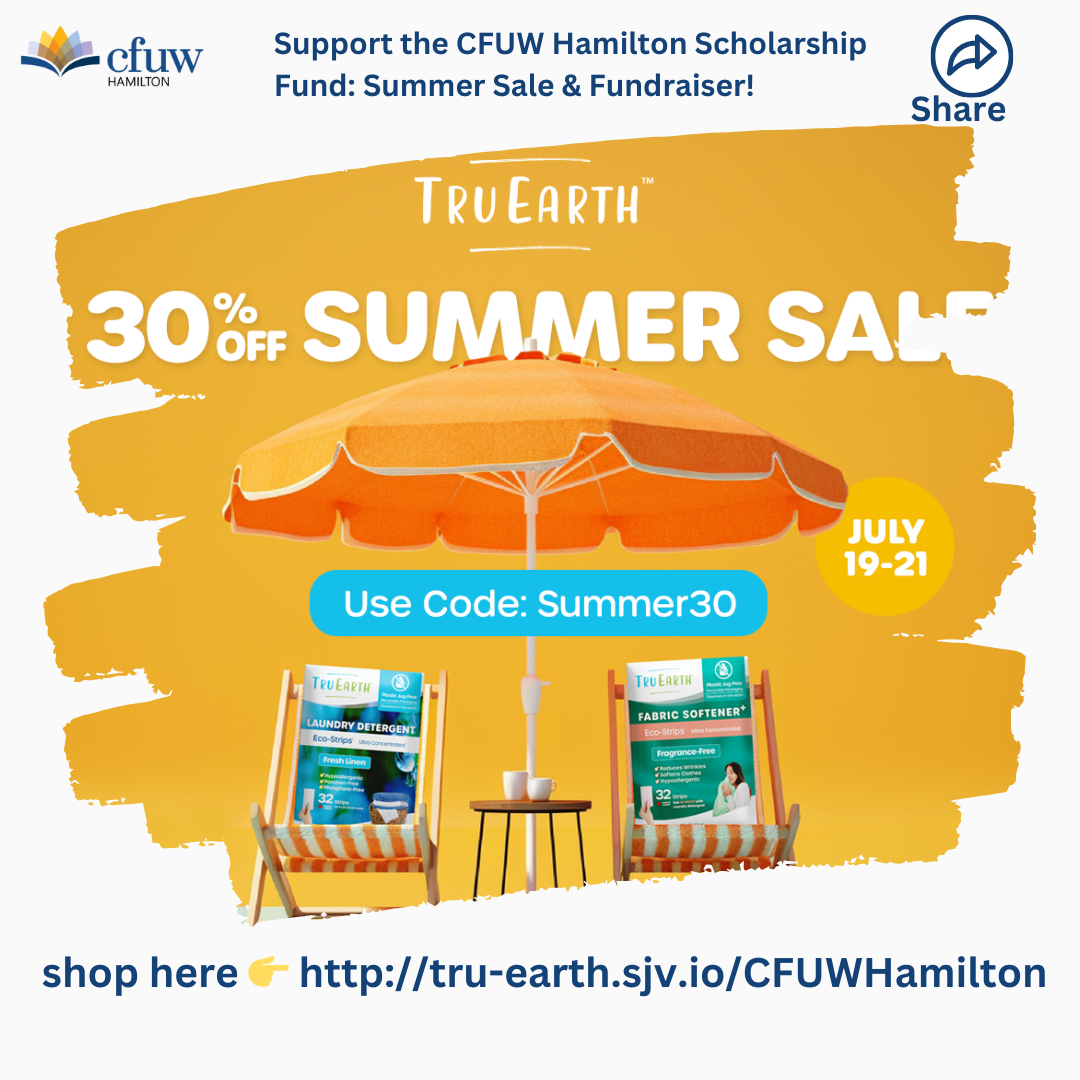 🌟 Tru Earth Fundraiser Summer Sale! 🌟 http://tru-earth.sjv.io/CFUWHamilton . Get 30% OFF July 19-21 with code Summer30 (excludes Bundles and Subscriptions).