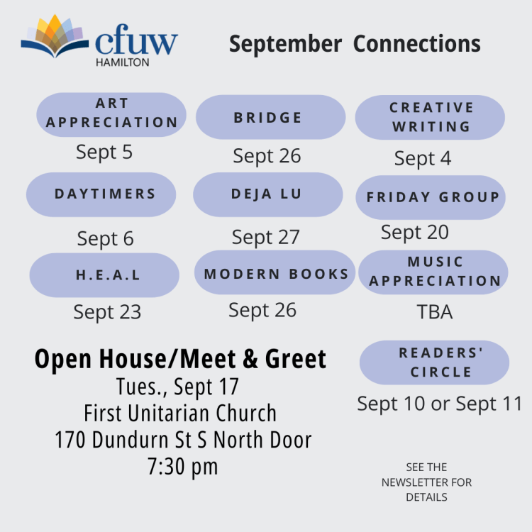 Stay connected and join the fun! Check out our upcoming CFUW Hamilton events and activities—perfect for new and returning members. 🌟📅 #CFUWHamilton #WomenSupportingWomen #SeptemberEvents #WelcomeNewMembers