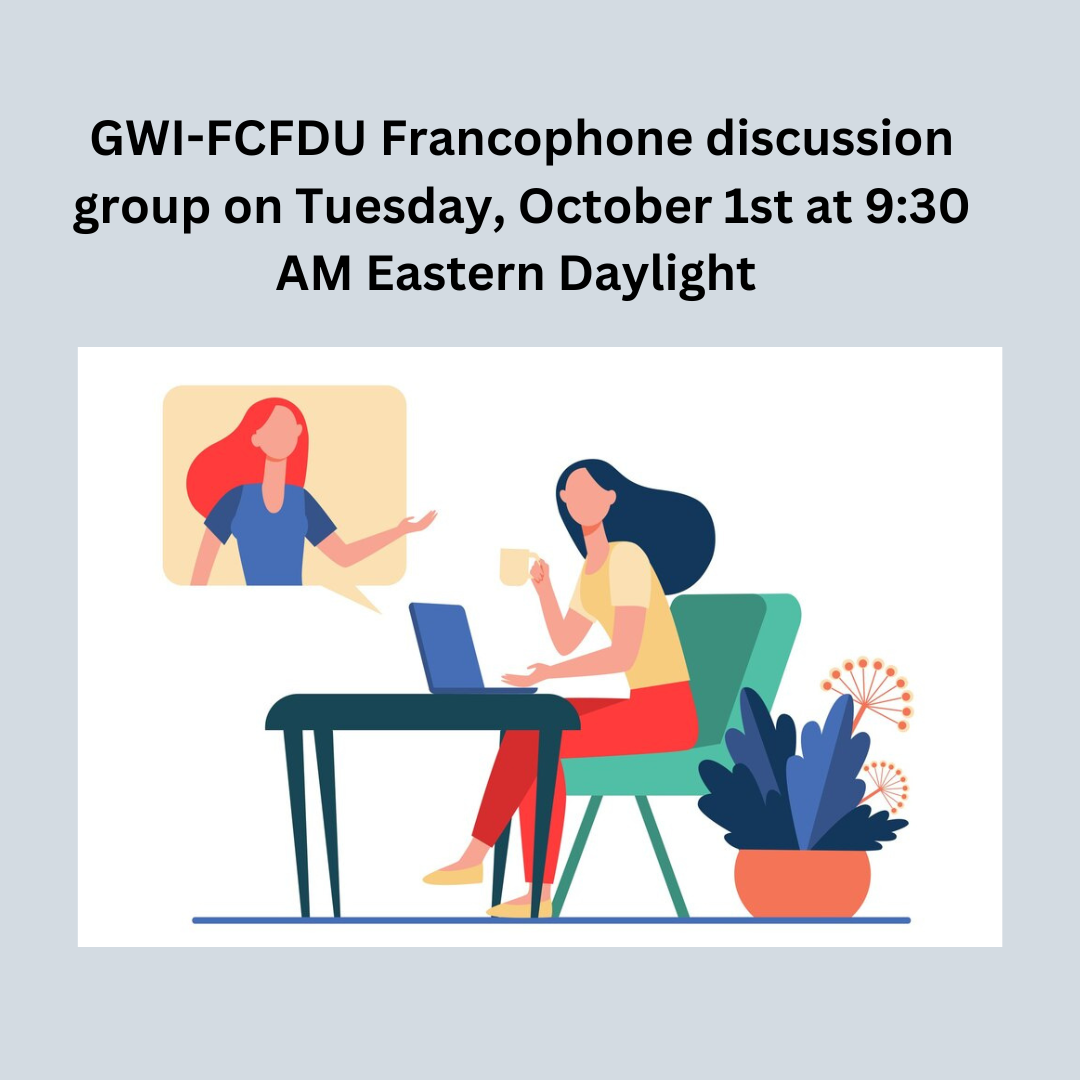 There will be another virtual meeting of the GWI-FCFDU Francophone discussion group on Tuesday, October 1st at 9:30 AM Eastern Daylight Time (EDT). Check the September 13th Club Action Newsletter for registration details. https://cutt.ly/leTAklBI