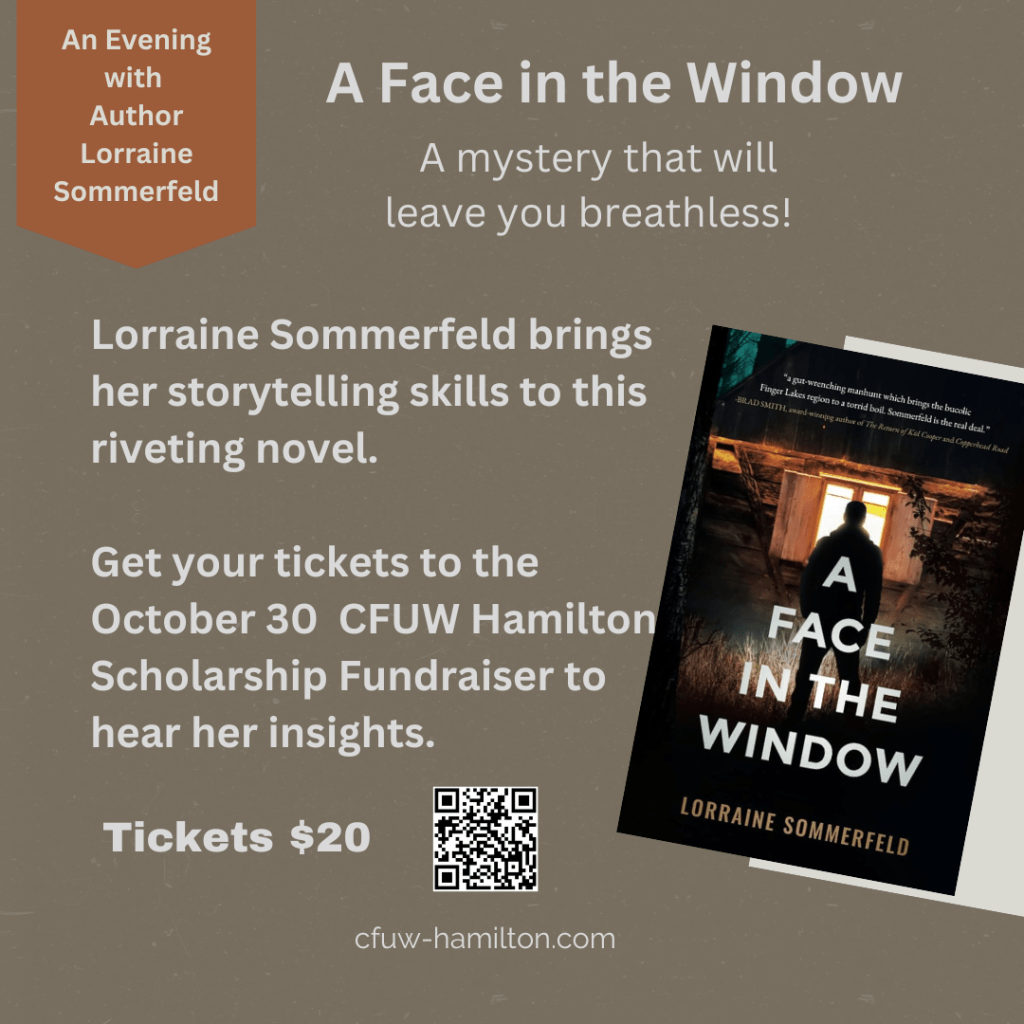 Curious about what’s behind A Face in the Window? Watch this sneak peek of award-winning journalist & author Lorraine Sommerfeld as she shares a glimpse of her debut novel. Don’t miss her live on Oct 30! 🎟️ Secure your tickets today: https://cutt.ly/UeOC04VE #CFUWHamilton #ScholarshipFundraiser #AuthorEvent