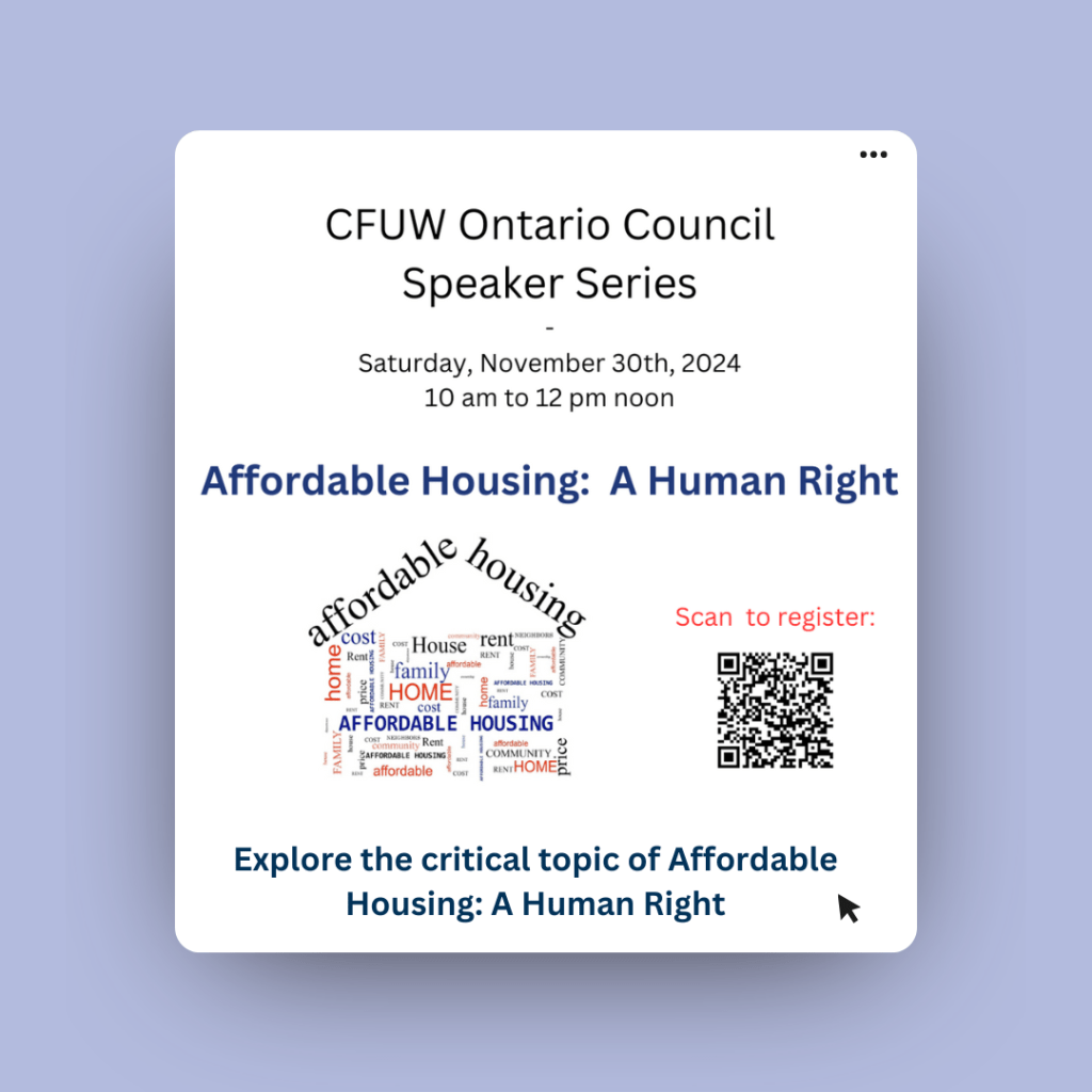 All CFUW Hamilton members are welcome to register and attend this thought-provoking webinar hosted by the CFUW Ontario Council.