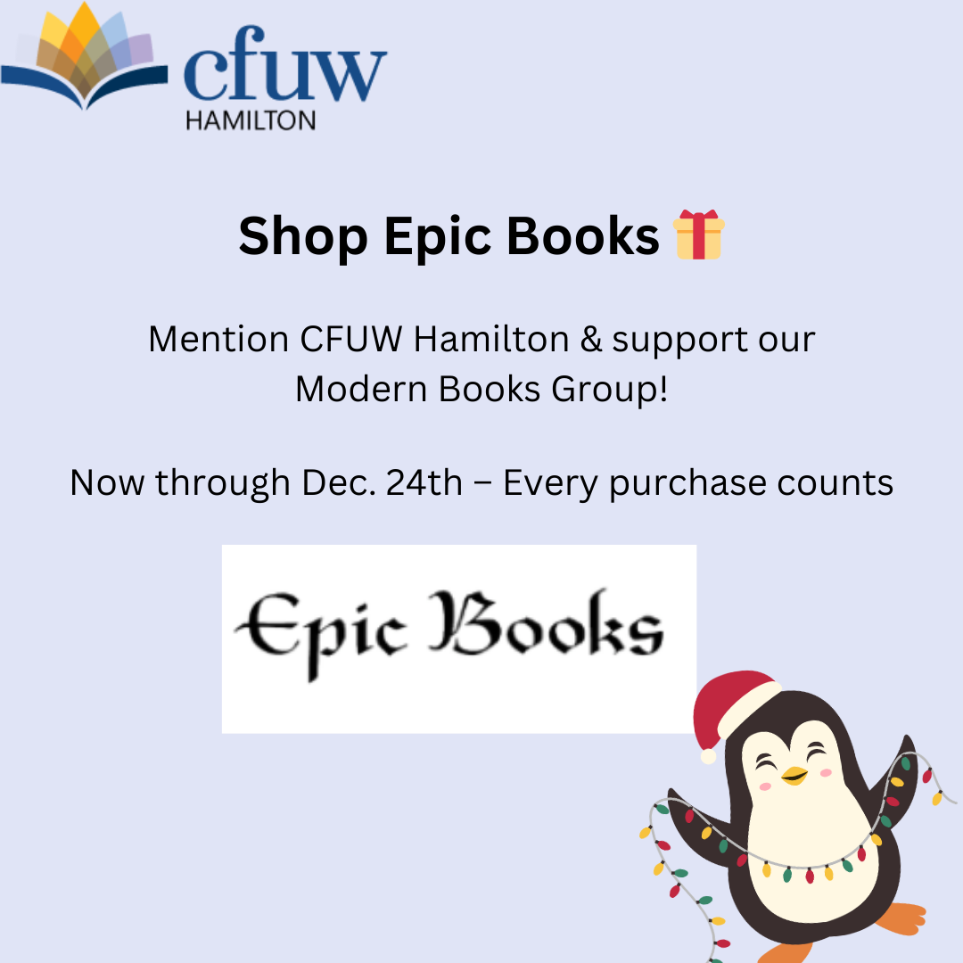 This season, shop for your holiday reads at Epic Books and mention CFUW Hamilton at checkout. Epic Books will tally your purchases, and the Modern Books group will receive a 10% credit to keep their circulating library thriving!