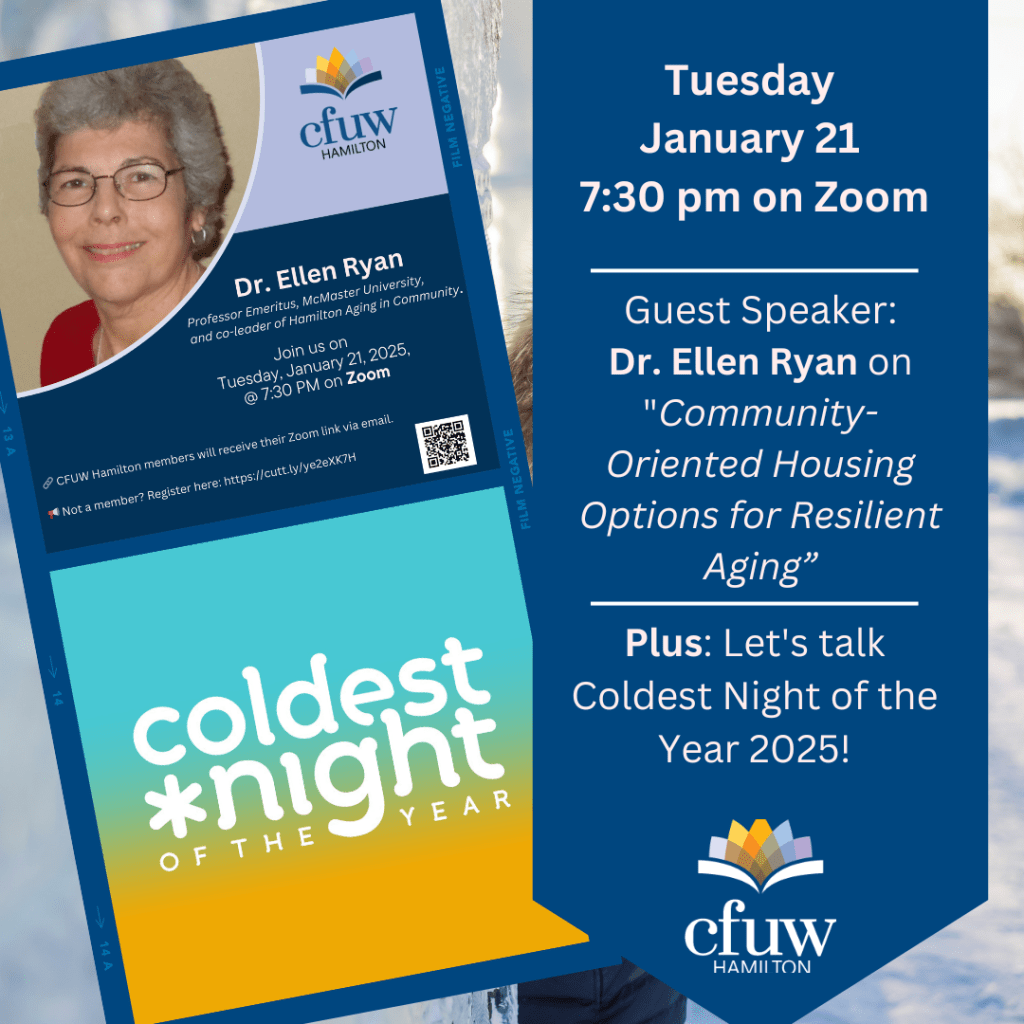 ⏰ TOMORROW! Resilient aging starts with community! Posted byInfoJanuary 20, 2025January 17, 2025Posted inUncategorized 🏡💡 Join Dr. Ellen Ryan 📅 Jan 21, 2025 🕢 7:30 PM, Zoom. CFUW members: Check your email. 📧 Non-members: Register now 👉 https://cutt.ly/ye2eXK7H Share this: Click to share on Facebook (Opens in new window) Facebook Click to share on X (Opens in new window) X Click to share on Pinterest (Opens in new window) Pinterest Click to email a link to a friend (Opens in new window) Email Click to share on LinkedIn (Opens in new window) LinkedIn Click to print (Opens in new window) Print Like Loading... Related