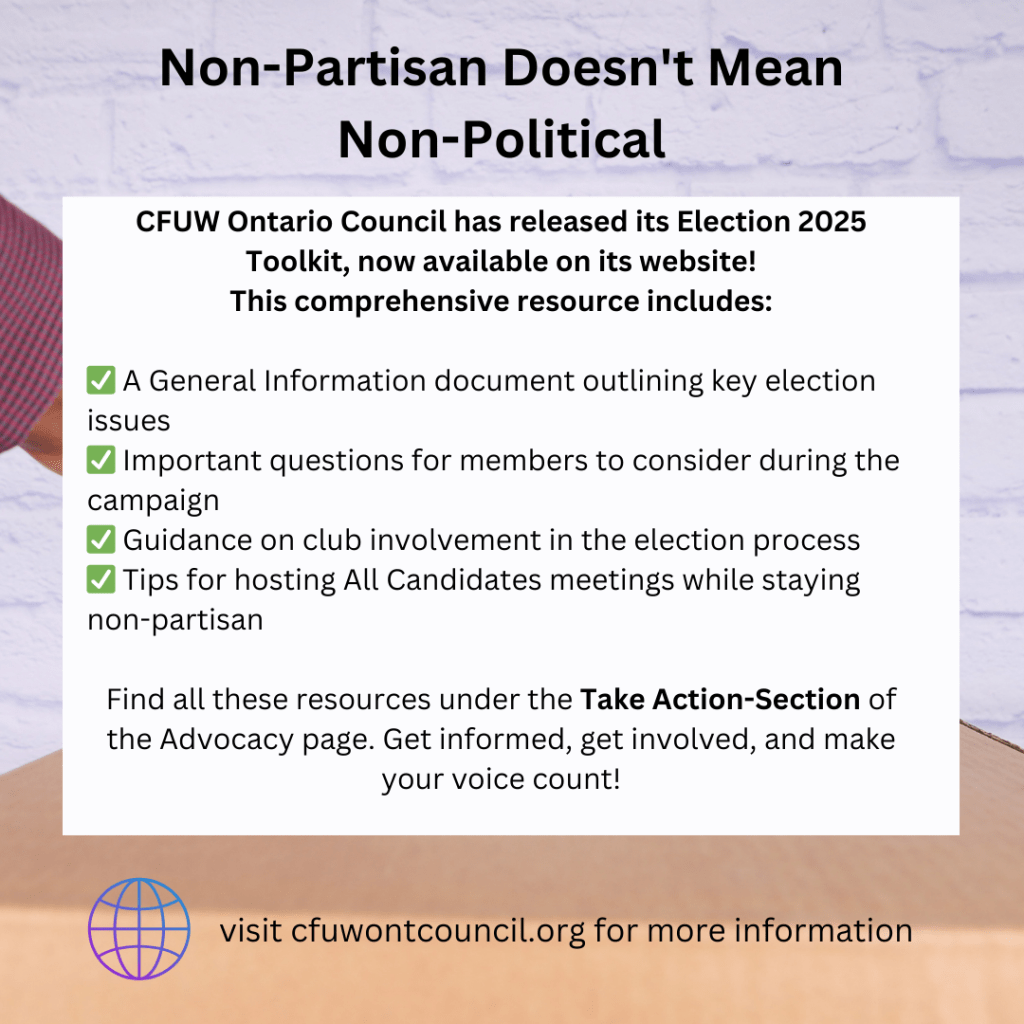 CFUW Ontario Council has released its Election 2025 Toolkit, now available ! 👉 https://cutt.ly/7e7U6e13