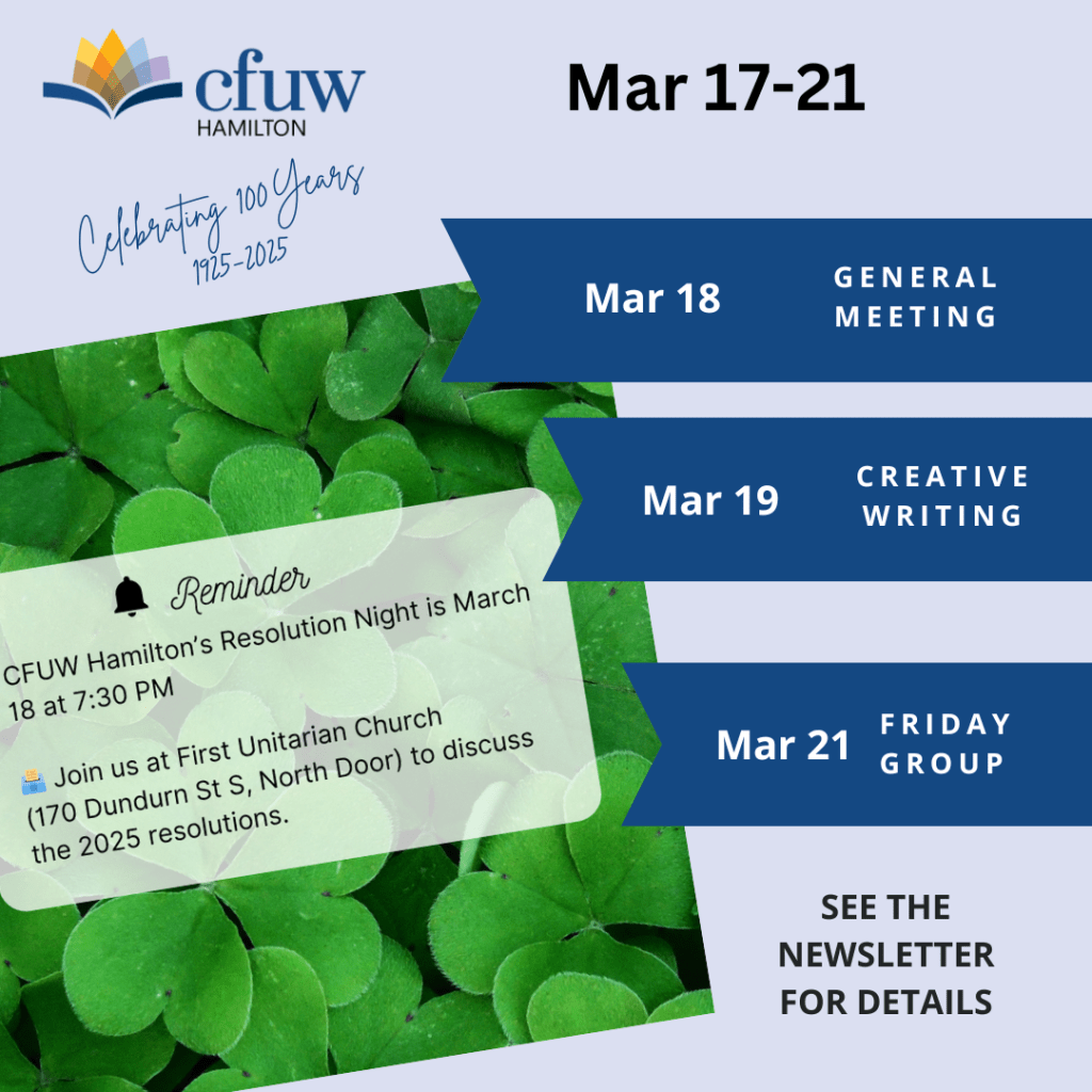 📢 Stay Connected! Upcoming CFUW Hamilton Events: March 17-21 Posted byInfoMarch 14, 2025March 13, 2025Posted inUncategorized Share this: Share on Facebook (Opens in new window) Facebook Share on X (Opens in new window) X Share on Pinterest (Opens in new window) Pinterest Email a link to a friend (Opens in new window) Email Share on LinkedIn (Opens in new window) LinkedIn Print (Opens in new window) Print Like Loading... Related