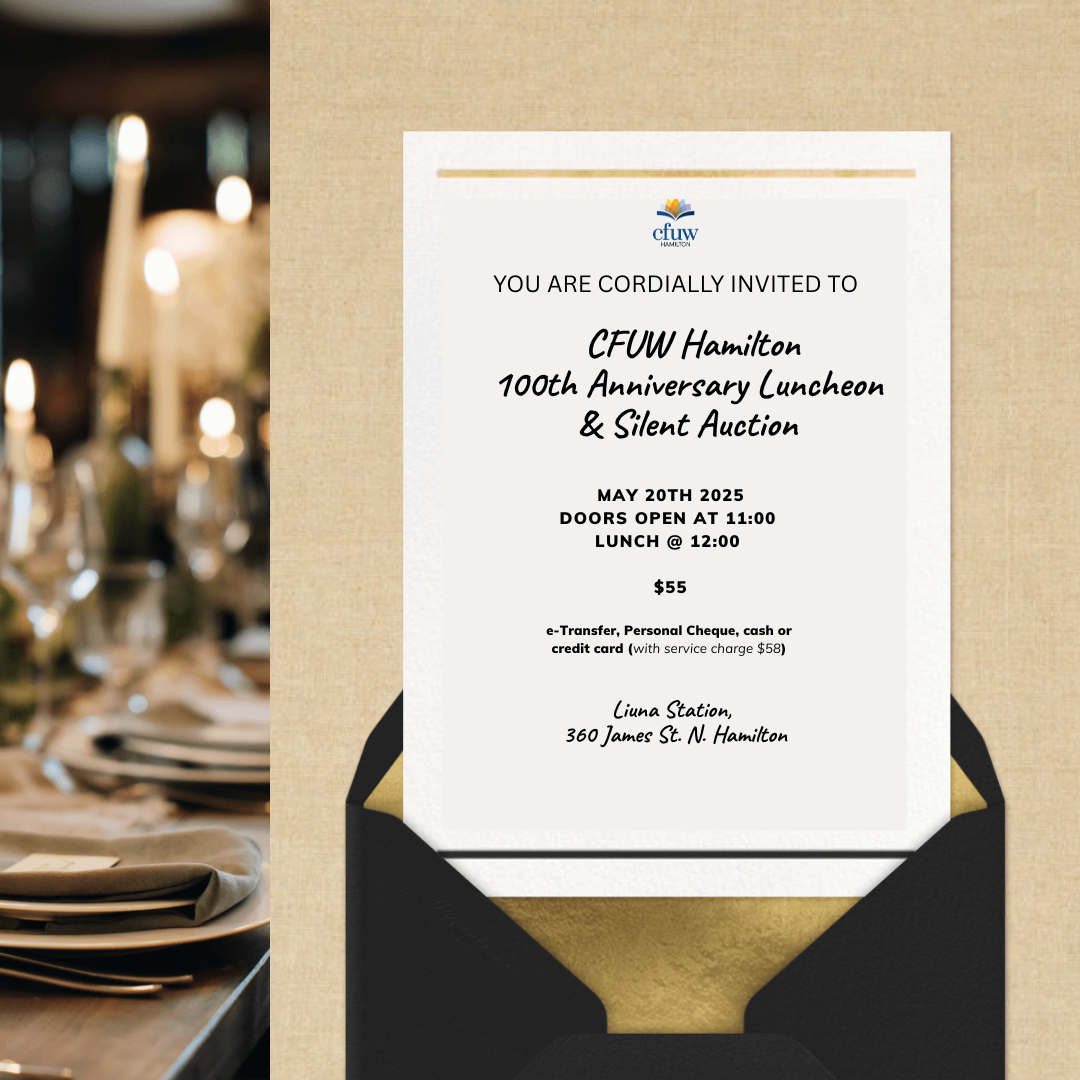 Be part of this milestone event and help us honour the past, present, and future of CFUW Hamilton. Expect inspiring stories, delicious food, and exciting plans for the next chapter. Reserve your ticket!