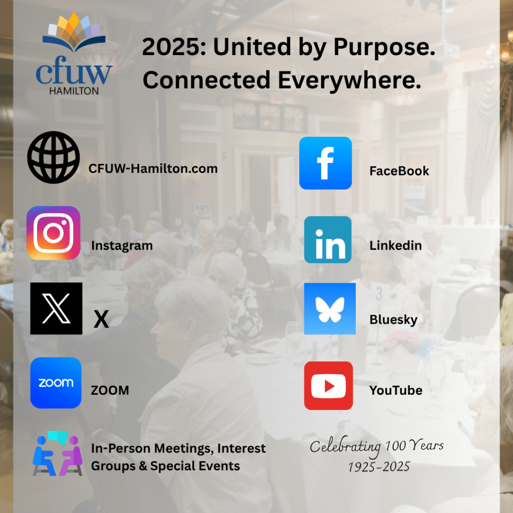Wherever women connect, CFUW Hamilton is there — online, in person, with interest groups & special events. Join us and be part of the community!