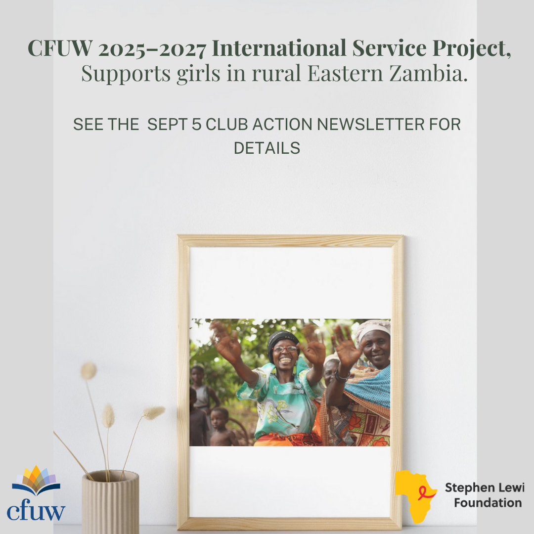 Our 2025–2027 International Service Project supports girls in rural Eastern Zambia learning about sexual & reproductive health.CFUW Members attending the GWI Triennial this September will visit project sites!