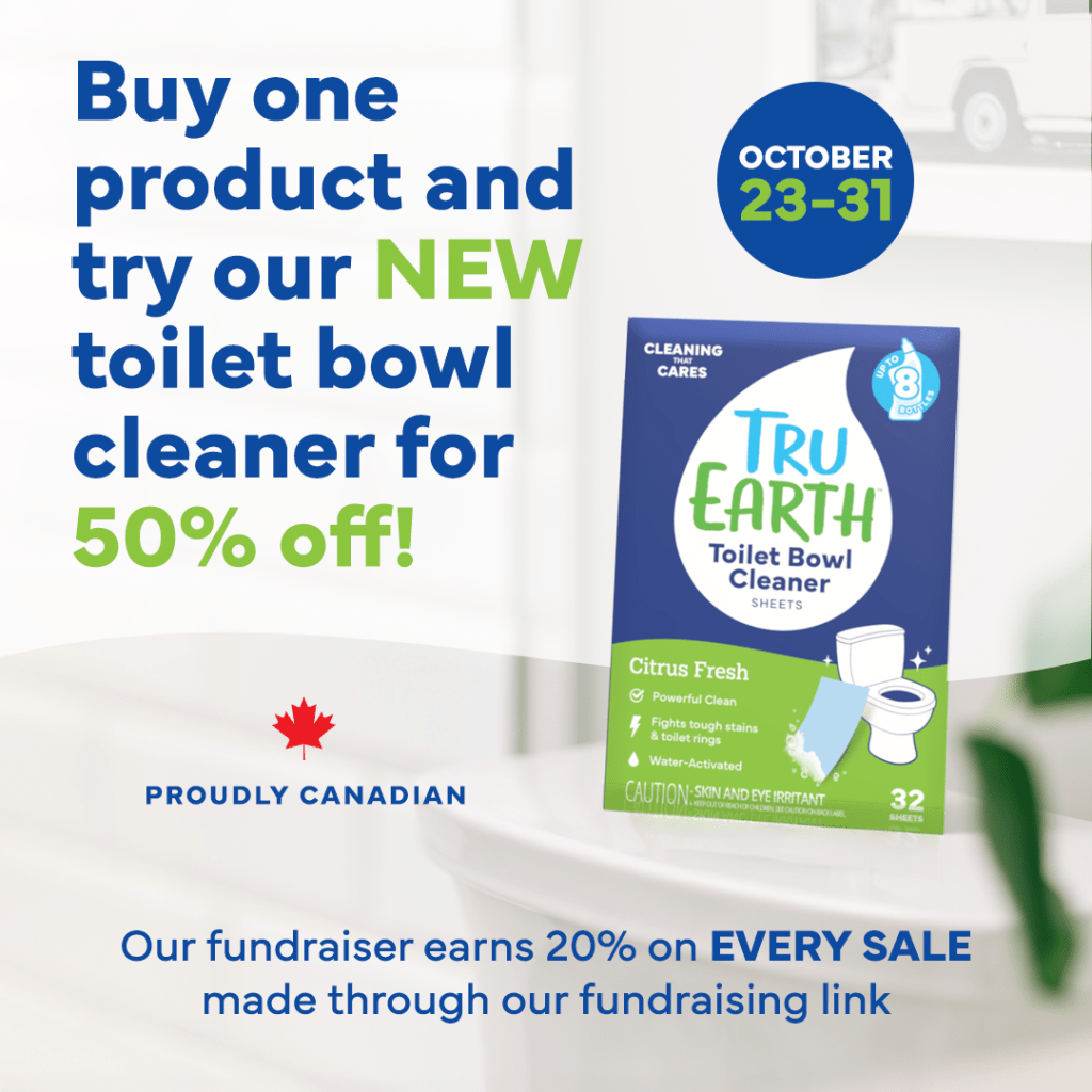 ⏰ Last chance! The sale ends soon. Get 50% off Tru Earth’s NEW eco Toilet Bowl Cleaner with any purchase. 🧼 Every order supports CFUW Hamilton Scholarships! 💚 Fundraising link – https://tru-earth.sjv.io/CFUWHamilton