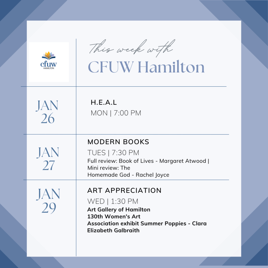 Another Great Week at CFUW Hamilton Posted byInfoJanuary 25, 2026January 24, 2026Posted inUncategorized Another great week of connection and conversation at CFUW Hamilton ✨ #CFUWHamilton #ThisWeekWithCFUW Share this: Share on Facebook (Opens in new window) Facebook Share on X (Opens in new window) X Share on Pinterest (Opens in new window) Pinterest Email a link to a friend (Opens in new window) Email Share on LinkedIn (Opens in new window) LinkedIn Print (Opens in new window) Print Like Loading... Related