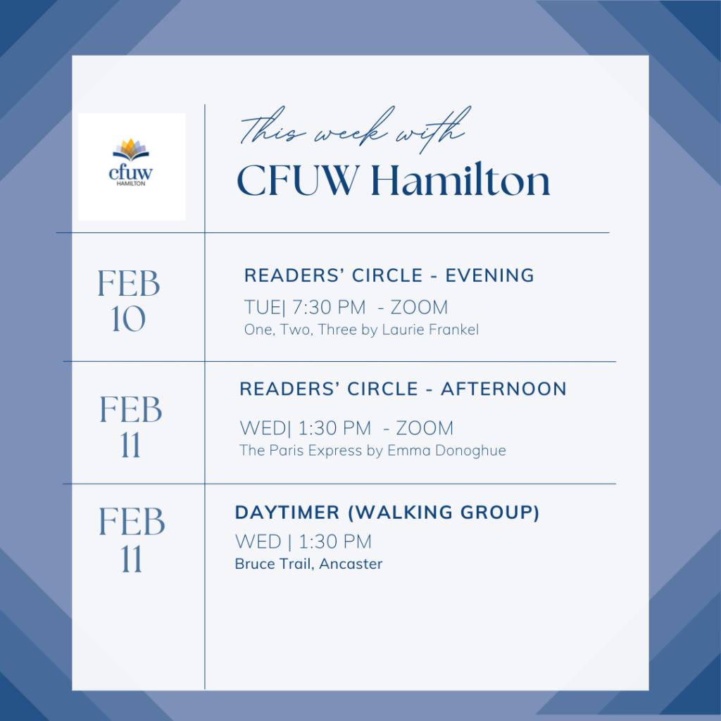 #CFUWHamilton #ReadersCircle #Daytimers #InterestGroups