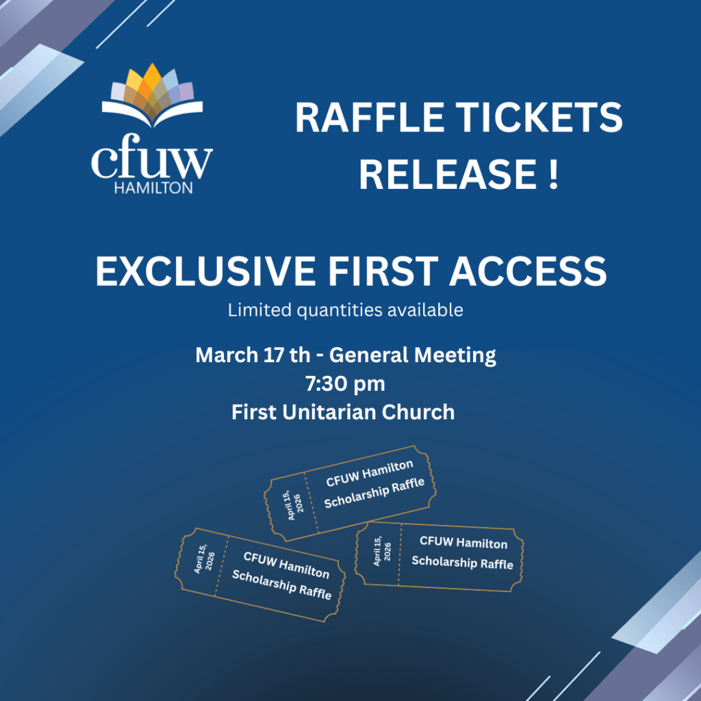 We’re putting the finishing touches on an exciting spring raffle in support of CFUW Hamilton scholarships. Think extraordinary generosity, local talent, and a chance to make a real impact for students in our community.