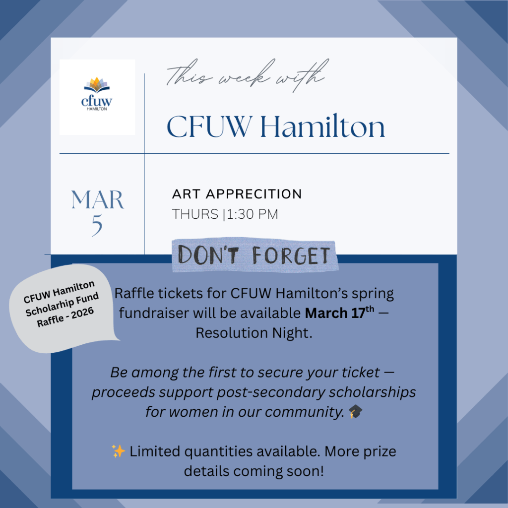 #CFUWHamilton #ArtAppreciation #MarchMeetings #InterestGroups #WomenConnecting