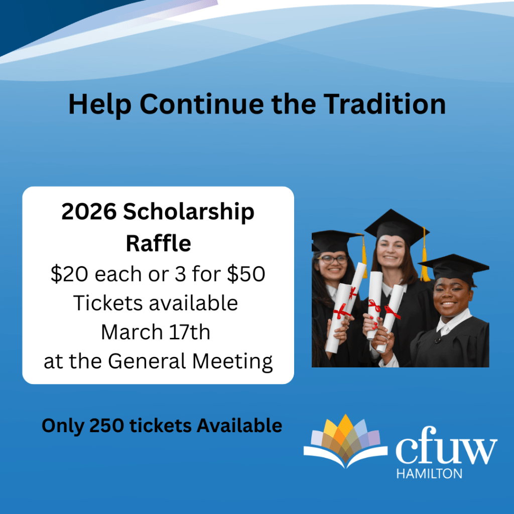 🎓 Win incredible prizes while supporting scholarships! Posted byInfoMarch 14, 2026March 12, 2026Posted inUncategorized click HERE for more details #CFUWHamilton #ScholarshipsMatter Share this: Share on Facebook (Opens in new window) Facebook Share on X (Opens in new window) X Share on Pinterest (Opens in new window) Pinterest Email a link to a friend (Opens in new window) Email Share on LinkedIn (Opens in new window) LinkedIn Print (Opens in new window) Print Like Loading... Related