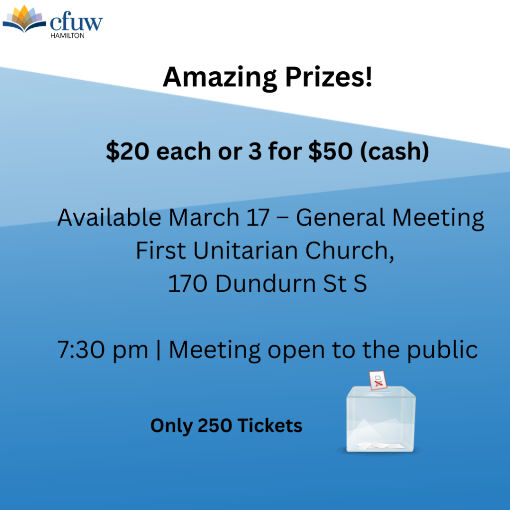 🎟 Be first in line for our raffle launch ! Posted byInfoMarch 15, 2026Posted inUncategorized Be the first to purchase tickets for our CFUW Hamilton raffle fundraiser (only 250 available). Swipe ➜ Share this: Share on Facebook (Opens in new window) Facebook Share on X (Opens in new window) X Share on Pinterest (Opens in new window) Pinterest Email a link to a friend (Opens in new window) Email Share on LinkedIn (Opens in new window) LinkedIn Print (Opens in new window) Print Like Loading... Related